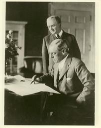 | Keywords: president wilson joseph tumulty josephtumulty desk writing monochrome Local Accession Number: 1007 Description: Photo of the President Wilson and Joseph Tumulty in the White House. Photographer: Harris and Ewing Source: Research Library, 20th Century Fox Size: 6.5x9, 8x10 Medium: Print, Black and White Date: 1913? Local Accession Number: 1007 Description: Photo of the President Wilson and Joseph Tumulty in the White House. Photographer: Harris and Ewing Source: Research Library, 20th Century Fox Size: 6.5x9, 8x10 Medium: Print, Black and White Date: 1913? |