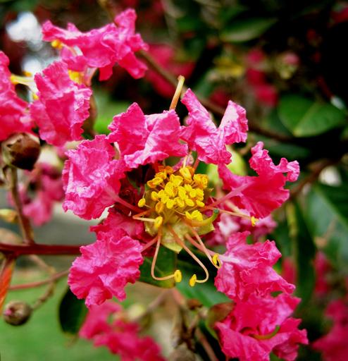 Keywords: pride of india flowers blossoms pink stamen yellow bright