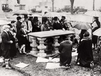 | Keywords: blackandwhite monochrome black and white SFA022825508 Nationaal Archief/Spaarnestad Photo/Het Leven Nederlands: Gelovigen rond het graf van de Ierse priester Patrick Power op de Holy Cross begraafplaats te Malden (USA), wiens graf een bedevaartsoord werd. Door de grafsteen aan te raken, was, geloofde men, genezing mogelijk. Malden, Massachusetts, USA, 1929. English: People around the grave of the Irish priest Patrick Power, a place of pilgrimage. People believe they can be healed by touching the tombstone. Holy Cross churchyard, Malden, USA, 1929. Hebt u meer informatie over deze foto, laat het ons weten. Laat een reactie achter (als u ingelogd bent bij Flickr) of stuur een mailtje naar: info@nationaalarchief.nl Please help us gain more knowledge on the content of our collection by simply adding a comment with information. If you do not wish to log in, you can write an e-mail to: info@nationaalarchief.nl Meer foto’s van Spaarnestad Photo zijn te vinden op onze beeldbank: www.spaarnestadphoto.nl/ SFA022825508 Nationaal Archief/Spaarnestad Photo/Het Leven Nederlands: Gelovigen rond het graf van de Ierse priester Patrick Power op de Holy Cross begraafplaats te Malden (USA), wiens graf een bedevaartsoord werd. Door de grafsteen aan te raken, was, geloofde men, genezing mogelijk. Malden, Massachusetts, USA, 1929. English: People around the grave of the Irish priest Patrick Power, a place of pilgrimage. People believe they can be healed by touching the tombstone. Holy Cross churchyard, Malden, USA, 1929. Hebt u meer informatie over deze foto, laat het ons weten. Laat een reactie achter (als u ingelogd bent bij Flickr) of stuur een mailtje naar: info@nationaalarchief.nl Please help us gain more knowledge on the content of our collection by simply adding a comment with information. If you do not wish to log in, you can write an e-mail to: info@nationaalarchief.nl Meer foto’s van Spaarnestad Photo zijn te vinden op onze beeldbank: www.spaarnestadphoto.nl/ |