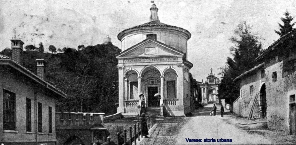 Keywords: A sinistra la chiesa dell'Immacolata Concezione (1609) sullo sfondo l'Arco del Rosario (1607) da cui si diparte la Via Sacra: entrambe sono opera dell'architetto Giuseppe Bernasconi. A destra la cascina Morona. varese primacappella