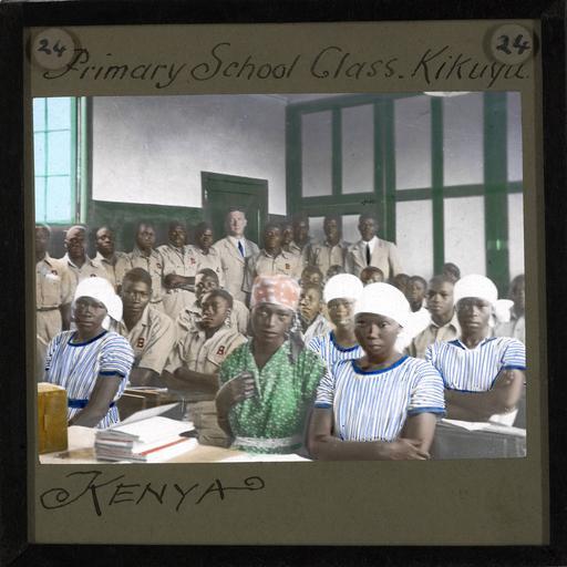 | Keywords: Primary School Class, Kikuyu, Kenya, ca.1905-ca.1940 (imp-cswc-GB-237-CSWC47-LS7-024).jpg en <br> Primary School Class Kikuyu Kenya ca 1905-ca 1940 Photograph of a primary school class at Kikuyu mission in Kenya Young men and women are gathered in a classroom most appear to be wearing a uniform The room is very busy with a number of men standing at the back of the classroom There is a pile of books on a desk at the front of the classroom ; This belongs to a series of Church of Scotland Foreign Missions Committee lantern slides relating to the Kikuyu Mission in Kenya which was set up by Church of Scotland missionaries Hospitals were established by Scottish missionaries in Kikuyu in 1908 in Tumutumu in 1909 and in Chogoria in 1922 The missionaries also introduced the Presbyterian Church to the area The Kikuyu are Kenyaas most populous ethnic group Photographer Unknown Filename imp-cswc-GB-237-CSWC47-LS7-024 tif Coverage date 1905/1940 Part of collection International Mission Photography Archive ca 1860-ca 1960 Type images Part of subcollection Photographs from the Centre for the Study of World Christianity University of Edinburgh U K ca 1900-ca 1940s Repository name Centre for the Study of World Christianity Archival file impaunpub_Volume7/1632 url Repository address The University of Edinburgh School of Divinity New College Mound Place Edinburgh EH1 2LX United Kingdom Geographic subject country Kenya Format aacr2 1 lantern slide 8 x 8 cm Geographic subject continent Africa Rights Contact the repository for details Part of series Kenya Mission LS7 Repository email divinity-CSWC ed ac uk Subject lcsh Keyword Education; School buildings Date created 1905/1940 Publisher of the digital version University of Southern California Libraries Subject aat genre group portraits Format aat lantern slides Legacy record ID impa-m68737 Access conditions http //www ed ac uk/schools-departments/divinity/research/centres/world-christianity/collections-resources File GB 237 CSWC47/LS7/24 1905/1940 author http //digitallibrary usc edu/cdm/ref/collection/p15799coll123/id/64747 PD-old-70-1923 Magic lantern images Images from USC Digital Library uploaded by Fæ International Mission Photography Archive ca 1860-ca 1960 |
