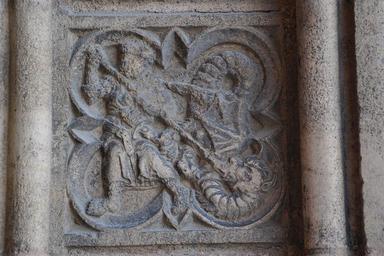 Keywords: Primatiale Saint-Jean Lyon Ext 250709 04.jpg fr Médaillon décorant un piédroit d'un portail de la primatiale Saint-Jean de Lyon début du 14ème siècle own Vassil 2010-12-29 Cc-zero West portals of Cathédrale Saint-Jean de Lyon