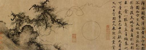 Keywords: Primordial Chaos by Zhu Derun.jpg en Primordial Chaos 渾淪 drawn by Zhu Derun in AD 1349 Yuan Dynasty Ink on paper Height 29 7 cm; width 86 2 cm Shanghai Museum 徳潤 渾淪図巻 元・至正9年(1349) 紙 墨画 29 7 x 86 2 cm 上海博物館 fr Zhu Derun 1294-1365 L'Origine primordiale ou Chaos primordial 1349 Rouleau horizontal encre sur papier 29 7 x 86 2 cm Musée de Shanghai Chinese Wikipedia Article 德润 1294 - 1365 Creator Zhu Derun 1349 AD PD-old-100 Zhu Derun PD China Paintings of the Yuan Dynasty Paintings in the Shanghai Museum |