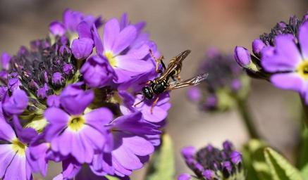 Keywords: primrose drumstick flower purple spring flower early bloomer garden nature field wasp insect animal close