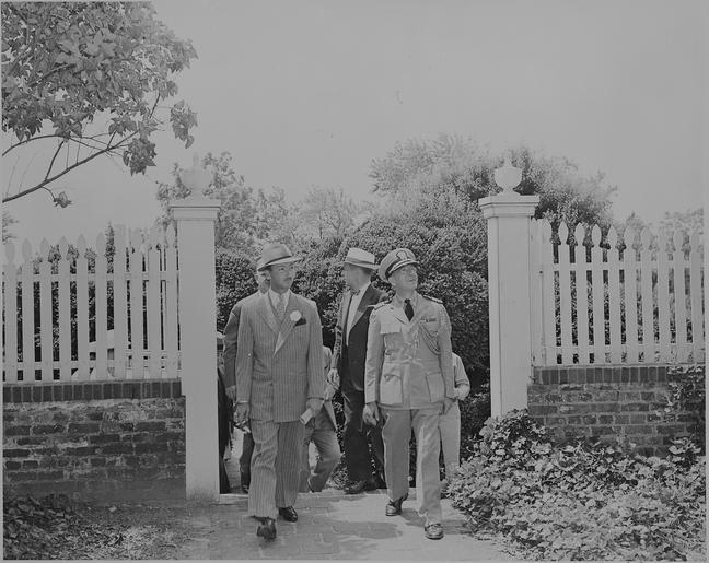 | Keywords: Prince Abdul Ilah of Iraq and an American officer walking into a garden area, probably at George Washington's home at... - NARA - 199096.tif Scope and content General notes 199096 Local identifier National Archives and Records Administration Office of Presidential Libraries Harry S Truman Library 04/01/1985 - NARA-Author Rowe Abbie 1905-1967 Photographer 8451352 <br /> Harry S Truman Library NLHST 500 West U S Highway 24 Independence MO 64050-1798 1945-05-08 Record group Collection HST-AVC Audiovisual Collection 1957 - 2006 Record group ARC 1207 Photographs Relating to the Administration Family and Personal Life of Harry S Truman compiled 1957 - 2004 documenting the period 1849 - 2004 Series ARC 198606 File unit File unit ARC Variant control numbers NAIL Control Number NLT-AVC-PHT-73 1943 yes Other versions <gallery> File Prince_Abdul_Ilah_of_Iraq_and_an_American_officer_walking_into_a_garden_area _probably_at_George_Washington's_home_at _-_NARA_-_199096 tif tif File Prince_Abdul_Ilah_of_Iraq_and_an_American_officer_walking_into_a_garden_area _probably_at_George_Washington's_home_at _-_NARA_-_199096 jpg jpg </gallery> NARA-cooperation PD-USGov Photographs by Abbie Rowe Black and white photographs NARA TIF images with categorized JPGs |