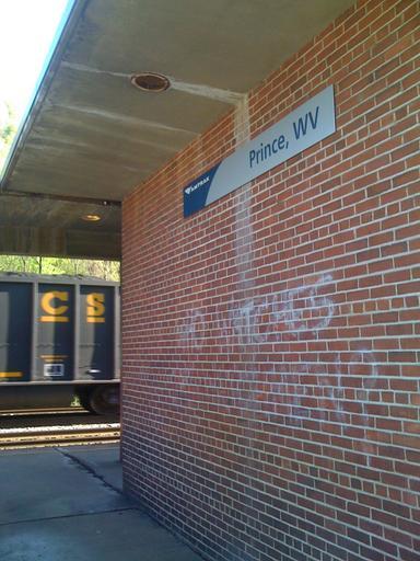 | Keywords: Prince West Virginia train station sign.jpg Prince West Virginia own 2011-04-21 en Christopher Ziemnowicz releases all rights but a photo credit would be appreciated if this image is used anywhere other than Wikipedia Please leave a note at Wikipedia http //en wikipedia org/w/index php title User_talk CZmarlin action edit section new here Thank you thumb left Front entrance to the train station thumb center The platform looking east thumb left Back of the building along the platform looking east thumb center Back of the building along the tracks facing west thumb left Detail of antique luggage cart on the platform thumb center Parking next to the platform 37 51 39 0 N 81 3 62 0 W alt 376 732558_source exif_heading Prince Amtrak station Train station signs in the United States |
