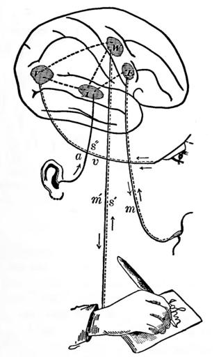| Keywords: Principles of Psychology (James) v1 p57.png en The human brain the four parts most concerned with speech <P>Fig 18 Associated text The subjoined diagram from Ross shows the four parts most critically concerned and in the light of our text needs no farther explanation <P> <P>From the first edition of The Principles of Psychology by William James 1890 vol I page 57 <P> 1890 https //archive org/details/principlesofpsyc001jame Internet Archive scan of the book William James other versions PD-old-100-1923 Principles of Psychology 1890 Illustrations of the human brain |