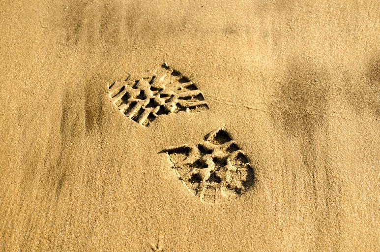 Keywords: print shoe walk footprint foot boot human sand outdoor way wet adventure rough warm shore mark white step seaside travel brown concept yellow dune shadow summer trekking people abstract shoe-print several