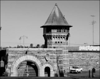 Keywords: prison gate building architecture black white black and white monochrome