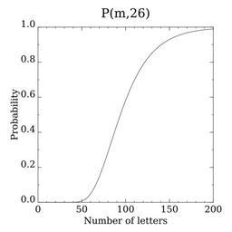 | Keywords: Probability that 0 ≤ m ≤ 200 random letters contain the entire alphabet.svg en A plot of <math>P m n \sum_ k 0 n -1 k n \choose k \left \frac n-k n \right m</math> for n 26 and 0 ‰¤ m ‰¤ 200 i e the probability than m uniformly distributed random letters will contain the entire 26-letter alphabet Own work by uploader computed with a Perl script given here plotted with GNU Plotutils tweaked in Inkscape Ilmari Karonen 2006-01-17 Other fields + 4 Combinatorics Functions | ||||