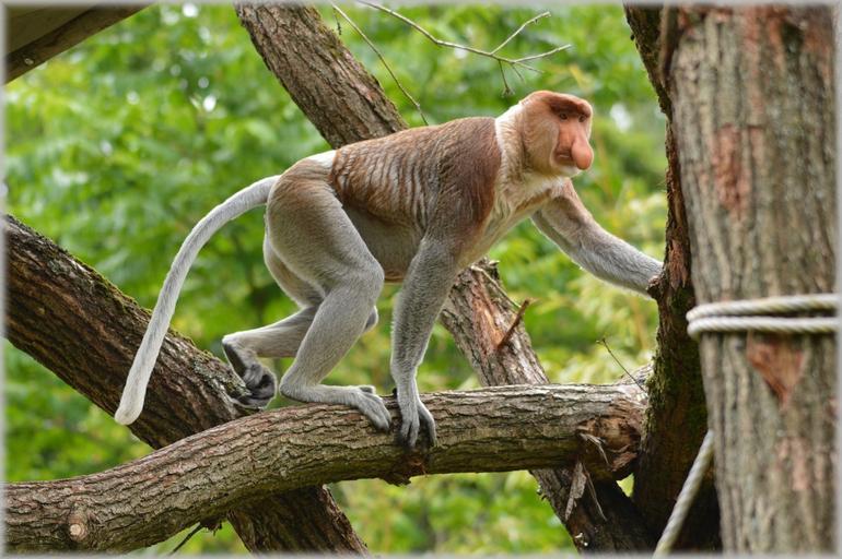 Keywords: proboscis monkey monkey rare wild exotic forest jungle species wildlife rainforest safari tree conservation herbivore park environment reserve habitat big nose ecology zoo climbing natural mammal outdoor