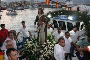 Keywords: roquetas de mar roquetasdemar fiestas roquetas de mar fiestasroquetasdemar fiestas santa ana roquetas de mar fiestassantaanaroquetasdemar fiestas el puerto roquetas de mar fiestaselpuertoroquetasdemar procesión santa ana procesiónsantaana outdoor crowd people El 26 de julio volvió a ser un día grande para El Puerto de Roquetas de Mar. La procesión en honor a la Virgen del Carmen y Santa Ana reunió a miles de personas que arroparon a las imágenes en el recorrido por las calles del barrio. Los vecinos y visitantes vivieron la procesión con intensidad y exaltación, y los vítores a la Virgen y Santa Ana fueron constantes. Por la mañana se celebraba la Santa Misa solemne en el tercer y último día del Triduo. Por la tarde, pasadas las 18 horas, comenzaba la procesión. Las imágenes estuvieron acompañadas por la música de la Banda de Música de Loja y de la Unión Musical Roquetas de Mar. Desde la Parroquia de Santa Ana se llegaba a la Calle El Faro y después hasta la explanada del Faro de Roquetas de Mar. En este punto se llevó a cabo una de las principales tradiciones de estas fiestas, el lavado de cara a Santa Ana. Gabriel Amat, alcalde de Roquetas de Mar, hizo el lavado, así como Marta López, que fue designada en el sorteo. Juani Cruz, también por sorteo, fue la persona que portó el agua para el lavado. Después la procesión continuó en dirección al muelle pesquero bordeando el Castillo de Santa Ana para iniciar la procesión marítima hacia Aguadulce. La imagen de la Virgen del Carmen procesionó en el barco Salvador El Fortuna, mientras que la de Santa Ana lo hizo en el Rompemares. Antes de llegar a Aguadulce se lanzaron cohetes en honor a la Virgen y a Santa Ana. En el Puerto Deportivo de Aguadulce se rezó a las imágenes, y se partió de nuevo hacia el Puerto de Roquetas de Mar. En alta mar también se lanzaron flores en memoria de los pescadores. Pasadas las 21 horas la procesión volvía a tierra y recorría la zona del ferial en dirección hacia la Iglesia del Puerto. Una vez en este punto, y con la presencia de miles de personas en la plaza, se lanzaba un espectacular castillo de fuegos artificiales con el que se ponía fin a la procesión. Antes de regresar las imágenes al templo se interpretó el himno de España que sirvió como despedida. El 26 de julio volvió a ser un día grande para El Puerto de Roquetas de Mar. La procesión en honor a la Virgen del Carmen y Santa Ana reunió a miles de personas que arroparon a las imágenes en el recorrido por las calles del barrio. Los vecinos y visitantes vivieron la procesión con intensidad y exaltación, y los vítores a la Virgen y Santa Ana fueron constantes. Por la mañana se celebraba la Santa Misa solemne en el tercer y último día del Triduo. Por la tarde, pasadas las 18 horas, comenzaba la procesión. Las imágenes estuvieron acompañadas por la música de la Banda de Música de Loja y de la Unión Musical Roquetas de Mar. Desde la Parroquia de Santa Ana se llegaba a la Calle El Faro y después hasta la explanada del Faro de Roquetas de Mar. En este punto se llevó a cabo una de las principales tradiciones de estas fiestas, el lavado de cara a Santa Ana. Gabriel Amat, alcalde de Roquetas de Mar, hizo el lavado, así como Marta López, que fue designada en el sorteo. Juani Cruz, también por sorteo, fue la persona que portó el agua para el lavado. Después la procesión continuó en dirección al muelle pesquero bordeando el Castillo de Santa Ana para iniciar la procesión marítima hacia Aguadulce. La imagen de la Virgen del Carmen procesionó en el barco Salvador El Fortuna, mientras que la de Santa Ana lo hizo en el Rompemares. Antes de llegar a Aguadulce se lanzaron cohetes en honor a la Virgen y a Santa Ana. En el Puerto Deportivo de Aguadulce se rezó a las imágenes, y se partió de nuevo hacia el Puerto de Roquetas de Mar. En alta mar también se lanzaron flores en memoria de los pescadores. Pasadas las 21 horas la procesión volvía a tierra y recorría la zona del ferial en dirección hacia la Iglesia del Puerto. Una vez en este punto, y con la presencia de miles de personas en la plaza, se lanzaba un espectacular castillo de fuegos artificiales con el que se ponía fin a la procesión. Antes de regresar las imágenes al templo se interpretó el himno de España que sirvió como despedida.