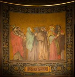 | Keywords: Procession des saints de Bretagne - diocèse de Saint-Brieuc, cathédrale saint Pierre, Rennes, France.jpg Artwork Creator Alphonse Le Hénaff Diocèse de Saint-Brieuc between 1871 1876 fresco Institution Cathédrale Saint-Pierre de Rennes Déambulatoire Briocenses caption bottom la Saint-Brieuc S Guillermus S Mauritius S Osmana S Miochus S Kerianus S Briocius S Budocus caption bottom la full form Sanctus Guillermus Sanctus Mauritius Sancta Osmana Sanctus Miochus Sanctus Kerianus Sanctus Briocius Sanctus Budocus saint Guillaume Pinchon saint Maurice de Carnoët sainte Osmane saint Miochus saint Querrien saint Brieuc saint Budoc own <gallery> File Procession des saints de Bretagne - diocèse de Rennes cathédrale saint Pierre Rennes France jpg File Procession des saints de Bretagne - diocèse de Vannes cathédrale saint Pierre Rennes France jpg File Procession des saints de Bretagne - diocèse de Cornouaille cathédrale saint Pierre Rennes France jpg File Procession des saints de Bretagne - diocèse de Léon cathédrale saint Pierre Rennes France jpg </gallery> <gallery> File Procession des saints de Bretagne - diocèse de Tréguier cathédrale saint Pierre Rennes France jpg File Procession des saints de Bretagne - diocèse de Saint-Brieuc cathédrale saint Pierre Rennes France jpg File Procession des saints de Bretagne - diocèse de Saint-Malo cathédrale saint Pierre Rennes France jpg File Procession des saints de Bretagne - diocèse de Dol cathédrale saint Pierre Rennes France jpg </gallery> PD-old-auto CC-zero 1884 Wikimedia France - Fañch Assessments 1 Procession des saints de Bretagne Wikipedia takes Rennes 2012 Procession des saints de Bretagne Taken with Canon EOS 5D Mark III Taken with Canon TS-E 17 mm F4L Featured pictures supported by Wikimedia France Roman Catholic Diocese of Saint-Brieuc |