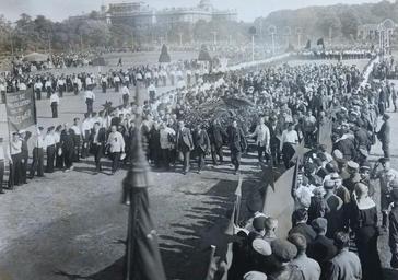 | Keywords: 20th century 20thcentury soviet union sovietunion boris souvarine borissouvarine russia demonstration commemoration field of mars fieldofmars petrograd saint-petersburg saintpetersburg february revolution februaryrevolution communist international communistinternational komintern third international thirdinternational iind congress iindcongress comintern july 1920 july1920 iiird international iiirdinternational outdoor people crowd Boris Souvarine Papers - Soviet Russia Photos graduateinstitute.ch/home/research/library/archives/boris... Notes: The document is a photo taken from a different angle of the procession which appears to be identified as a commemoration on the occasion of the opening of the IInd Congress of the IIIrd International (17th July 1920). To read more about it, please see the photos tagged with "Field of Mars". One reads on the banner (left): "Long live the proletarian revolution". Unknown photographer. Description: 1 photograph. Black and white ; 11 x 15.5 cm. Sources and further reading: Rosmer, Alfred. 1920. Moscou sous Lénine. Extract available online, "XIII: Smolny - Séance solennelle d'ouverture du IIe Congrès": www.marxists.org/francais/rosmer/works/msl/msl2013.htm Boris Souvarine Papers - Soviet Russia Photos graduateinstitute.ch/home/research/library/archives/boris... Notes: The document is a photo taken from a different angle of the procession which appears to be identified as a commemoration on the occasion of the opening of the IInd Congress of the IIIrd International (17th July 1920). To read more about it, please see the photos tagged with "Field of Mars". One reads on the banner (left): "Long live the proletarian revolution". Unknown photographer. Description: 1 photograph. Black and white ; 11 x 15.5 cm. Sources and further reading: Rosmer, Alfred. 1920. Moscou sous Lénine. Extract available online, "XIII: Smolny - Séance solennelle d'ouverture du IIe Congrès": www.marxists.org/francais/rosmer/works/msl/msl2013.htm |