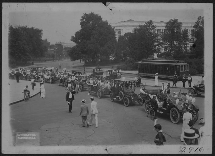 | Keywords: Procession Summer 1913 159052v.jpg Title Procession Summer 1913 Delegation Coming in from Hyattsville to present petition from all parts of the U S Contributor Names Harris Ewing Washington D C Photographer Created / Published 1913 July 31 Subject Headings - National Woman's Party--Automobile tours - Processions - Women--Suffrage--United States - Suffragists--United States--1910-1920 - Photographs - United States -- District of Columbia - United States -- Maryland -- Hyattsville Genre Photographs Notes - Summary Photograph of procession of cars draped with banners passing White House - Title transcribed from item Medium 1 photograph print; 5 x 7 in Call Number Location National Woman's Party Records Group I Container I 159 Folder Hyattsville Meeting July 31 1913 Source Collection Records of the National Woman's Party Repository Manuscript Division Digital Id http //hdl loc gov/loc mss/mnwp 159052 http //www loc gov/collections/women-of-protest/ sp 19 PD-old suffragettes |