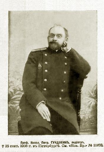 | Keywords: Professor Gundobin Nikolay Petrovich.jpg en Gundobin Nikolay Petrovich professor of Pediatrics ru П офессо В А П Гундобин Вы езка из иллюст и ованного п иложения к газете овое в емя 11683 от 20 сентяб я 3 октяб я 1908 г https //vivaldi nlr ru/pn000115304/view page 403 author 1908 Nikolay Gundobin Paediatricians from Russia PD-old |
