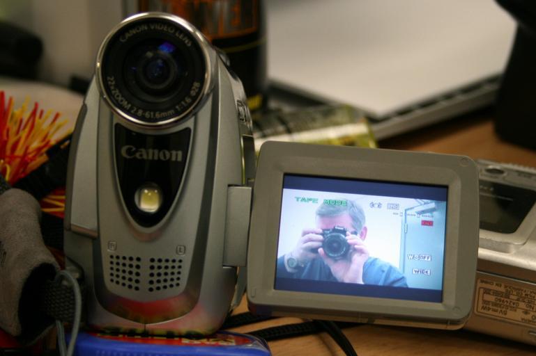 Keywords: camcorder canons project 365 project365 self portrait selfportrait strange loop strangeloop canooning indoor electronics camera Just about all of my morning was spent with a young lass who decided to stay unconscious a little bit longer than I wanted her to, and so photographic opportunities were a bit light today. So this seems as good a time as any to provide the obligatory self portrait that must feature in there somewhere. Even the mighty koosh ball makes a minor guest appearance! And if I'm shooting a Canon that's shooting a Canon - are they Canoning into each other? Ah, the wordplay possibilities are endless. :) Just about all of my morning was spent with a young lass who decided to stay unconscious a little bit longer than I wanted her to, and so photographic opportunities were a bit light today. So this seems as good a time as any to provide the obligatory self portrait that must feature in there somewhere. Even the mighty koosh ball makes a minor guest appearance! And if I'm shooting a Canon that's shooting a Canon - are they Canoning into each other? Ah, the wordplay possibilities are endless. :)