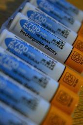 | Keywords: 2700 mah 2700mah aa cell aacell battery nimh project 365 project365 rechargeable indoor text document writing depth of field Another long and tedious work day, albeit doing important work. This didn't lead to many exciting photo opportunities, so it's yet another 'grab a random object' shot. Sitting on my desk are a bunch of AA Rechargeable batteries that I picked up off Ebay. I got these with the intention of using them in my battery grip on the camera, but I've discovered that the Li-Ion batteries are far more convenient and last a lot longer. I'm also not sure that my title is correct. I think these are actually single cells, which if wired together would become a battery. The PP3 9V battery is however, a real battery, with six little 1.5V cells inside it. But now I'm digressing. :) I'll try for something more interesting tomorrow. Another long and tedious work day, albeit doing important work. This didn't lead to many exciting photo opportunities, so it's yet another 'grab a random object' shot. Sitting on my desk are a bunch of AA Rechargeable batteries that I picked up off Ebay. I got these with the intention of using them in my battery grip on the camera, but I've discovered that the Li-Ion batteries are far more convenient and last a lot longer. I'm also not sure that my title is correct. I think these are actually single cells, which if wired together would become a battery. The PP3 9V battery is however, a real battery, with six little 1.5V cells inside it. But now I'm digressing. :) I'll try for something more interesting tomorrow. |