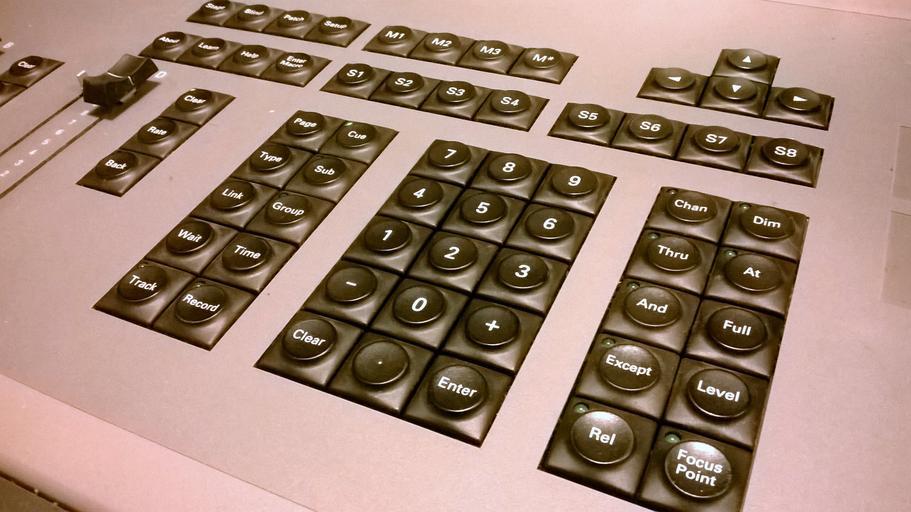 Keywords: dmx controller dmxcontroller etc express etcexpress lighting console lightingconsole project 365 project365 theatre control room theatrecontrolroom indoor text I spent a lot of time today fighting with this DMX lighting controller in the theatre in school. It seemed to have dropped its configuration and wasn't operating any of the lights. Reading the manual, it looks like it has a battery back up that holds the configuration in a semi-volatile RAM, but when this thing has been powered down over the six weeks of summer that has sounded the death knell. After a fairly long fight (that should have taken five minutes) I've got it controlling the static lights across 12 channels, but so far the moving lights elude me. They have built in dimmer boards which I need to research a bit more. I may well keep you posted. :) I spent a lot of time today fighting with this DMX lighting controller in the theatre in school. It seemed to have dropped its configuration and wasn't operating any of the lights. Reading the manual, it looks like it has a battery back up that holds the configuration in a semi-volatile RAM, but when this thing has been powered down over the six weeks of summer that has sounded the death knell. After a fairly long fight (that should have taken five minutes) I've got it controlling the static lights across 12 channels, but so far the moving lights elude me. They have built in dimmer boards which I need to research a bit more. I may well keep you posted. :)