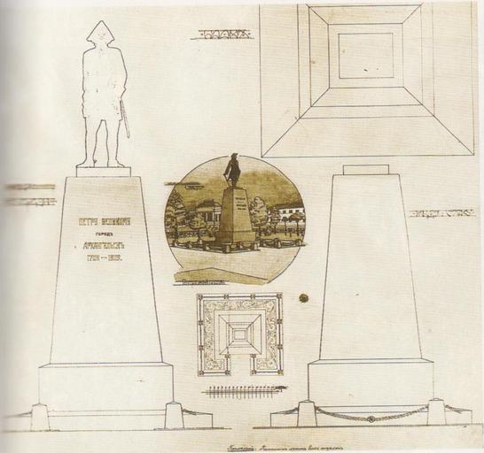 Keywords: Project postamenta Petra.jpg П оект постамента памятника Пет у Пе вому в А хангельске скан из книги Вы сказали А хангельск Ю ия Ба ашкова ISBN 978-5-85879-549-0 1909 а хитекто Се гей Пец PD-old Monument to Peter the Great in Arkhangelsk