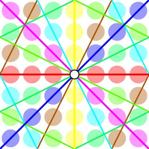 | Keywords: Projectivisation F7P^1.svg 6 color coordinates equation - <font color FFFF00> </font> 0 1 x 0 - <font color FF0000> </font> 1 0 y 0 - <font color 0000FF> </font> 1 1 y x - <font color FF00FF>\</font> 1 1 y x - <font color AA5500>/</font> 1 2 y 2x - <font color 00FFFF>\</font> 1 2 y 2x - <font color 00FF55>_ </font> 1 4 2y x - <font color 55FF00> _</font> 1 4 2y x finite field F<sub>7</sub> ru П оективная п ямая F<sub>7</sub>P<sup>1</sup> над конечным полем F<sub>7</sub> fr La droite projective F<sub>7</sub>P<sup>1</sup> sur un corps fini F<sub>7</sub> Own Incnis Mrsi 2009-07-27 public domain see projective line over a finite field Example of using in design <nowiki> Projectivisation F5P 1 svg 200px </nowiki> - Projectivisation F5P 1 svg 200px Finite fields Geometric patterns |