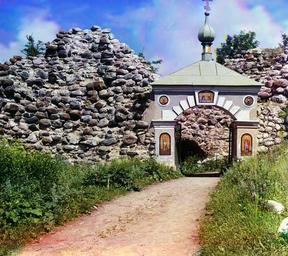 Keywords: Prokudin 20893v Old Ladoga 1909.jpg en Entrance into the yard of the Church of Saint George Staraia Ladoga Russian Empire ru Ста ая Ладога Вход в ог аду це кви св Гео гия 1909 prokc 20893 Creator Sergey Prokudin-Gorsky digital rendering by Юкатан other versions Custom license marker 2014 11 23 PD-Russia PD-1923 Uploaded with UploadWizard Photo of Saint Petersburg Governorate by Sergey Prokudin-Gorsky Ruins in Russia Gates in Russia Staraya Ladoga Fortress |