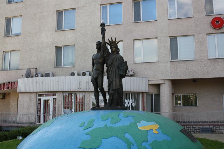 MAKE A MEME View Large Image Prometheus and Statue of Liberty1.JPG en Monument Prometheus and Statue of Liberty Dneprodzerzhinsk Ukraine uk Пам'ятник П ометею та Статуї Свободи у Дніп одзе жинську own Ed1984 2010-07-17 ...