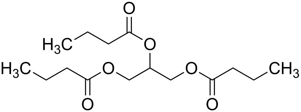 Keywords: Propane-1,2,3-triyl tributyrate 200.svg validSVG Structure of propane-1 2 3-triyl tributyrate Own 2014-03-25 Emeldir <span class signature-talk >talk</span> Chemical structure verified https //upload wikimedia org/wikipedia/commons/b/b0/Propane-1 2C2 2C3-triyl_tributyrate_200 svg 1S/C15H26O6/c1-4-7-13 16 19-10-12 21-15 18 9-6-3 11-20-14 17 8-5-2/h12H 4-11H2 1-3H3 UYXTWWCETRIEDR-UHFFFAOYSA-N 60-01-5 200-451-5 PD-chem Triglycerides |