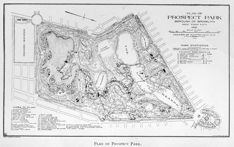 | Keywords: ProspectPark 1901Plan.jpg Plan of Prospect Park Borough of Brooklyn New York City 1902 Annual Report New York City Department of Parks 1901 City of New York Published before 1923 Public Domain in the United States http //memory loc gov/award/mhsdalad/160000//160050v jpg Library of Congress American Landscape and Architectural Design 1850-1920 a lantern slide from the collection using the NYC Parks Department map as a source Remarks This 1901 Plan map of Prospect Park Brooklyn NY was originally published in the 1902 Annual Report of the Department of Parks City of New York Map prepared by A S DeForest Cartographer for the George H Walker Company Boston There appear to be two errors in the map legend 13 demarking 'East Wood Arch' Meadowport Arch on http //www prospectpark org/general/map/map 2006 pdf the current 2006 map appears to be located at the Thatched Hut burned down 1937 ; the Thatched Hut is not indicated in the legend The correct location of East wood Meadowport Arch is unmarked but lies about 300 feet southwest of the misplaced marker; note where path appears to intersect/go under the West Drive 28 demarking 'Administrative Buildings' appear to be where the greenhouses were located demolished 1955 Digital scan of the map furnished by Joy Holland Research Librarian Brooklyn Collection Brooklyn Public Library PD-old 1901 in New York City Prospect Park Old maps of Brooklyn New York City Annual reports of the Department of Parks |