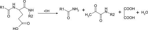 | Keywords: Proteinoxidation 02.svg Proteinoxidation Polypeptidstrangbruch durch die Oxidation eines Glutaminrestes durch reaktive Sauerstoffspezies Protein oxidation Fragmentation by oxidation of glutamic acid own derived from E R Stadtman und R L Levine Chemical modification of proteins by reactive oxygen species In Redox Proteomics From Protein Modifications To Cellular Dysfunction And Diseases ' I Dalle-Donne A Scaloni und A Butterfield Editors Wiley Interscience Series on Mass Spectrometry 2006 ISBN 0-471-72345-2 p nsp;45 See also R Widmer http //opus kobv de/tuberlin/volltexte/2007/1504/ Wirkung von Hemmstoffen und Antioxidantien in Gliazellen bei Anoxie/Reoxygenierung und in der hepatischen Enzephalopathie Dissertation TU Berlin 2007 2010-01-17 Kuebi Armin Kübelbeck Protein degradation |