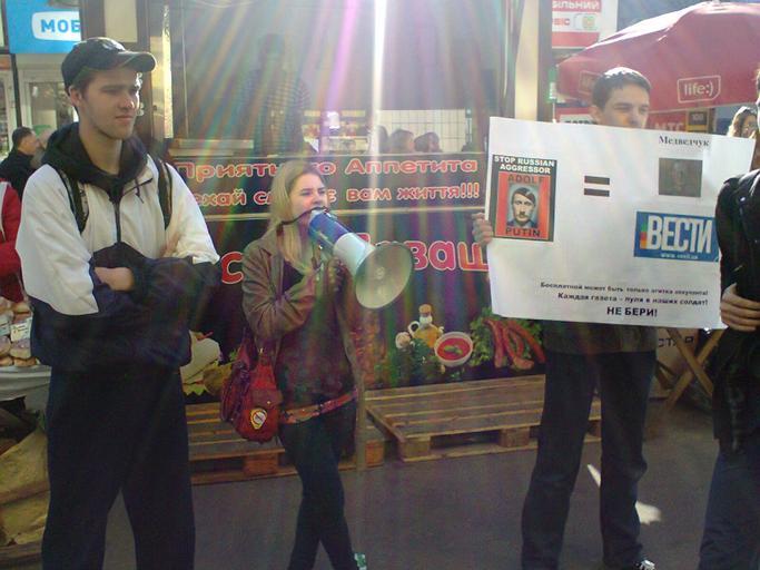 | Keywords: Protest against Vesti newspaper.jpg ru Г уппа молодых людей пикети ующих аздачу ук аинской газеты Вести Киев en Group of young people protesting against distribution of ukrainian newspaper Vesti 2014-03-25 08 39 06 own Vasyatka1 50 27 02 5 N 30 27 58 8 E region RU_type landmark_scale 1500 Euromaidan in Kiev March 2014 Vesti newspaper of Ukraine Demonstrations and protests relating to media of Ukraine Anti-Putin inscriptions signs images | ||||