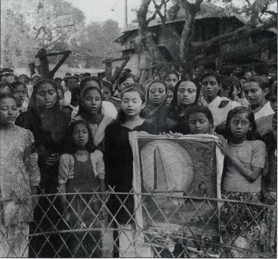 | Keywords: Provat Feri Madical Hostel 21 Feb 1955.png বাংলা ১৯৫৫ সালের ২১শে ফেব্রুয়ারি মেডিক্যাল হোস্টেল প্রাঙ্গনে শহ দ চত্বরে গেন্ডারিয়া অঞ্চল থেকে আগত একটি প্রভাত ফেরির দল শ্রদ্ধা নিবেদন করছে।<br>English 21st February morning 1955 A group from Gendaria placing respect at the martyrs' monument in front of medical hostel Author's Album 1955-02-21 Prof Rafiqul Islam PD-Pakistan GFDL cc-by-3 0 Photos by Rafiqul Islam | ||||