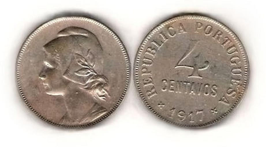 Keywords: PRT025.JPG Portugal 4 centavos 1917 Coins of Portugal Portuguese First Republic 1917 coins Allegories of the Portuguese Republic 2006-09-17 own assumed B25es