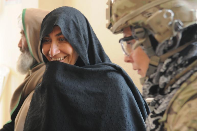 | Keywords: PRT Farah visits Children's Supplemental Feeding Center in Farah City 130119-N-LR347-280.jpg en An Afghan woman smiles while chatting through an interpreter with U S Navy Hospital Corpsman 1st Class Jennifer Kleve a medic with Provincial Reconstruction Team PRT Farah during the PRT's visit to the children's supplemental feeding center in Farah City Jan 19 The supplemental feeding center in at the Farah City hospital is sponsored by PRT Farah and provides food education and vaccinations to Afghan children PRT Farah's mission is to train advise and assist Afghan government leaders at the municipal district and provincial levels in Farah province Afghanistan Their civil military team is comprised of members of the U S Navy U S Army the U S Department of State and the U S Agency for International Development USAID U S Navy photo by Lt j g Matthew Stroup/released 2013-01-19 Lt j g Matthew Stroup https //www dvidshub net/image/816869 130119-N-LR347-280 2013-01-19 09 23 FARAH CITY AF PD-USGov-Military-Navy United States Agency for International Development Images from DoD uploaded by Fæ |