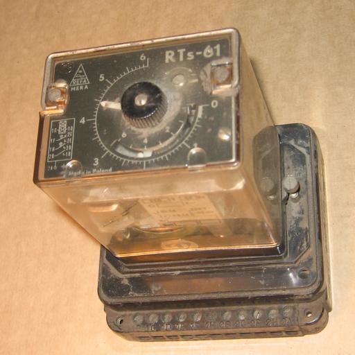 Keywords: Przekaznik.czasowy.RTs-61.jpg Electromagnetic relay with response time-delay regulation przekaźnik elektromagnetyczny z regulacją czasu reakcji Julo Switch clocks Socket relays Pulse relays