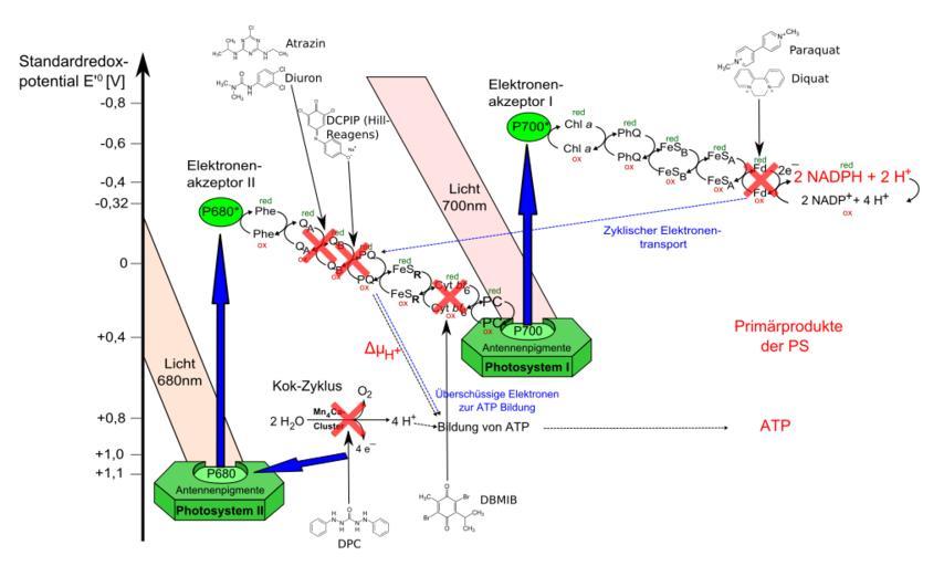 | Keywords: PS-Hemmer.svg de Z-Schema der Lichtreaktion mit Angriffspunkten der Photosystem-II-Hemmer DPC Diphenylcarbazid DCPIP 2 6-Dichlorphenolindophenol DBMIB Dibromthymochinon http //www uni-marburg de/fb17/fachgebiete/pflanzenphysio/lehre/fmpp/tag6 Lichtreaktion-z-schema svg 2014-07-27 Kopiersperre <span class signature-talk ></span> PD-own Photosynthesis Herbicides |