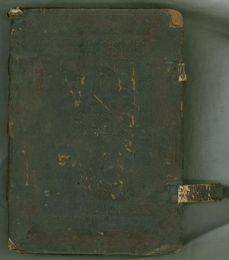 | Keywords: Psalterium Romanum cum hymnis et antiphonis -Imprint- Castano Primo- Johannes Antonius de Cornate, 12 Jan. 1486 - 4° - - Upper cover (IA35160).jpg Style Panel design; Caption Upper cover; Colour Brown; Edge Plain exhibition history Decorative Technique Tooled in blind; Cover Material Goatskin includes morocco turkey etc ISTC No ip01046330 Imperfect wanting sheets f3-4 for which duplicates of f1-2 have been substituted Presented in 1977 as part of the Broxbourne Gift Two pairs of clasps catching onto the lower cover Binding extremely worn De Marinis 49 Tav XLVII-L ; BMC XII 81 object history Text 1486; Unspecified; Unspecified object type Cc-zero place of creation Binding Italy place of discovery Unspecified British Library image http //www bl uk/catalogues/bookbindings/LargeImage aspx RecordId 020-000019444 ImageId ImageId 57714 Copyright BL Psalterium Romanum cum hymnis et antiphonis Imprint Castano Primo Johannes Antonius de Cornate 12 Jan 1486 4° Uploaded with GWToolset Psalterium Romanum cum hymnis et antiphonis Imprint Castano Primo Johannes Antonius de Cornate 12 Jan 1486 4° - Upper cover IA35160 http //www webarchive org uk/bldatasets/bindings/ia35160 jpg Bookbinding 15th-century bookbinding British Library Bookbindings |
