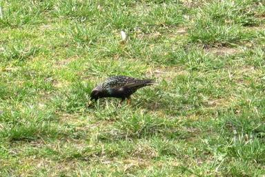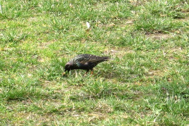 Keywords: Ptaszek.jeden.jpg European starling on the lawn in the center of city Wrocław Poland; spring 2008 szpak na trawniku we Wrocławiu wiosna 2008 own 2008-04-04 Julo Julo Sturnus vulgaris eating