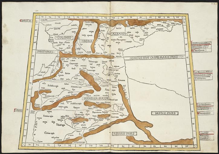 | Keywords: Ptolemy 2nd cent 1.jpg en Published in Claudius Ptolemy Cosmographia Translated by Jacobus Angelis Edited by Nicolaus Germanus Ulm Lienhart Holle 1482 folio 113-114 el Συλλογή του Κλαύδιου Πτολεμαίου http //maps bpl org/id/m0612038 Συλλογή Κλαύδιου Πτολεμαίου 1482 PD-old-100 Ptolemaic Caucasus region Cosmographia Nicolai Germani impressa Ulmae anno 1482 |
