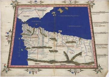 | Keywords: Ptolemy Cosmographia 1467 - North West Africa.jpg Book Jacob d'Angelo after Claudius Ptolemaeus 1467 Reichenbach Monastery Latin Cosmographia Claudii Ptolomaei Alexandrini Artwork en North-West Africa pl Północno-zachodnia Afryka ink color parchment cm 42 28 8 Warsaw Institution National Library Warsaw en Dedicated to Pope Paul II Object history ProvenanceEvent 1573 transfer Chancellor Jan Zamoyski purchased in Paris ProvenanceEvent 1818 transfer Library of the Zamoyski Estate ProvenanceEvent 1946 transfer National Library in Warsaw http //www polona pl/dlibra/doccontent2 id 61 dirids 1 www polona pl Rps BOZ 2/I-II 1467 Nicolaus Germanus Copyright expired PD-Art Other versions PD-old-100-1923 Cosmographia Claudii Ptolomaei Alexandrini Ptolemaic Africa 15th-century maps of Africa Old maps of Morocco |