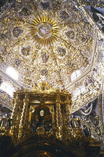 Keywords: PueAv0037.jpg Cúpula da Capilla del Rosario junto à Iglesia de Santo Domingo Cidade de Puebla Estado de Puebla México Nas paredes da cúpula há cabeças das quais saem longos fios dourados que se entrelaçam para formar a moldura de seis quadros que retratam os mistérios do rosário A cúpula apresenta ainda anjos dançantes e querubins Foto em feb/2004 Altevir Vechia Al Vec 2007-01-25 own assumed Al Vec bg wikipedia Ласа о_Ка денас 1 Churches in Puebla |