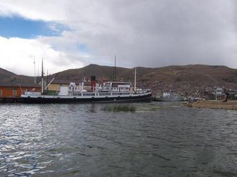 Keywords: Puerto de Puno 3.jpg Puerto de Puno en el Lago Titicaca The PeruRail steamship SS Ollanta black hull centre left and Peruvian Navy hospital steamship BAP Puno grey hull centre right moored in the port of Puno on Lake Titicaca Peru own 2003-01-01 Alfredobi Puno Ships built in England Ships built in 1862 Ollanta ship 1931 Naval ships of Peru Hospital ships |