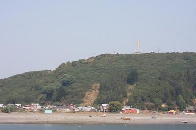 Keywords: chile colorful colors hill house montt patagonia puerto red resting roof sky tree wood