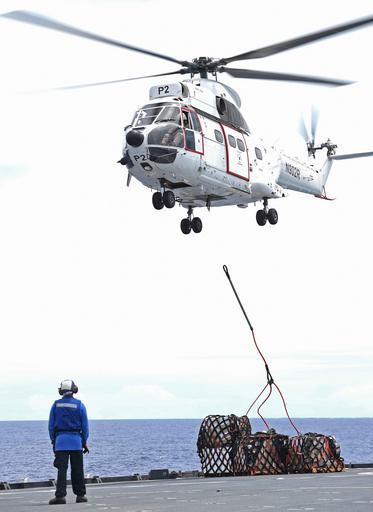 Keywords: Puma lowering cargo onto the USS Ashland.jpg en NORTH PACIFIC OCEAN June 17 2015 - A Puma dry cargo transport helicopter from USNS Tippecanoe T-AO-199 lowers cargo on to the flight deck of the amphibious dock landing ship USS Ashland LSD-48 Ashland is assigned to the Bonhomme Richard Expeditionary Strike Group and is on patrol in the U S 7th Fleet area of operations U S Navy photo by Mass Communications 3rd Class David A Cox 2015-06-16 20 00 00 https //www dvidshub net/image/2013415/uss-ashland-operations U S Navy photo by Mass Communications 3rd Class David A Cox other versions PD-USGov-Military-Navy USS Ashland LSD-48 2015 in aviation N902R aircraft Military Sealift Command |