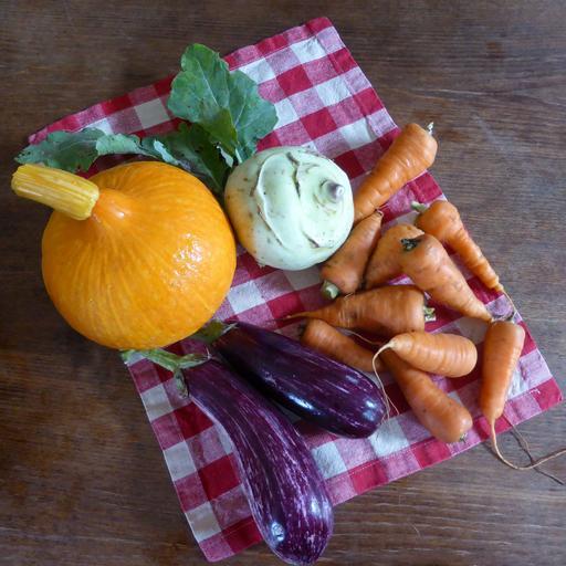 Keywords: pumpkin carrots eggplant cook food eat delicious harvest vitamins of course healthy plant vegetables bio frisch ingredients kohlrabi