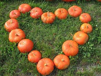 Keywords: pumpkin meadow autumn orange heart love grass vegetables nature