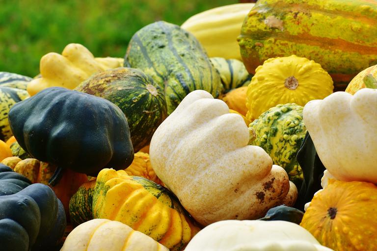 Keywords: pumpkins autumn autumn decoration harvest decorative squashes decoration orange yellow halloween garden color colorful seasonal pumpkin