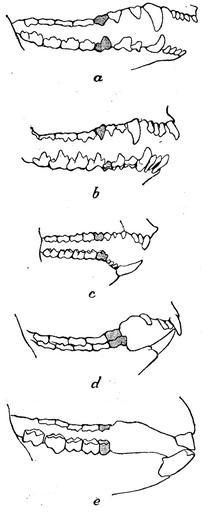 | Keywords: Pungdjurens tänder.png en Teeth of some marsupial mammals the first premolar is with dark color<br> a Opossums; b Dasyuridae; c possum; d koala; e wombat sv Pungdjurens tänder första premolar är mörkare<br> a pungråtta; b rovpungdjur; c klätterpungdjur; d koala; e vombat Nordisk familjebok http //runeberg org/nfcb/0314 html author 1915 Machoires de koala avec dents png not yet PD-Ugglan Marsupialia in art | ||||