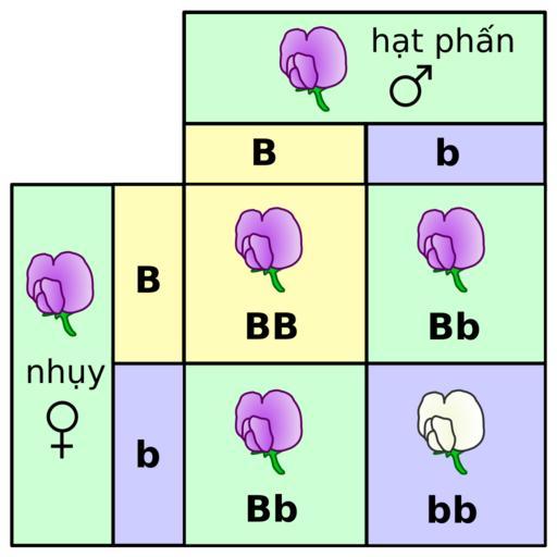 | Keywords: Punnett square mendel flowers vi.svg Genetics diagram Punnett square describing one of Mendel's crosses between parents that are heterozygous for the purple/white color alleles Vietnamese translation of File Punnett square mendel flowers svg 2009-02-08 User DHN translation Madprime GFDL Cc-by-sa-3 0-migrated Cc-by-sa-2 5 2 0 1 0 Punnett squares |