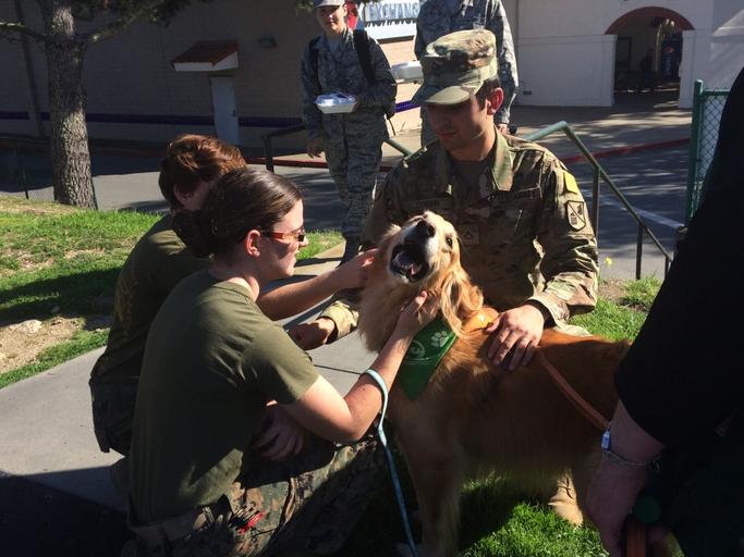 Keywords: presidio pom public_affairs publicaffairs monterey dli dliflc defense_language defenselanguage foreign_language foreignlanguage military language foreign defense community community_relations communityrelations california ca calif dod joint education school ready resilient ready_and_resilient readyandresilient resiliency 229th military_intellegence militaryintellegence intelligence foxtrot f_co fco family_readiness familyreadiness frg family readiness dog dogs mascot lingo humane humane_society humanesociety monterey_county montereycounty spca usa Foxtrot Company, 229th Military Intelligence Bn., brought the SPCA of Monterey County "Hug a Pet" team and a hot dog lunch to Defense Language Institute Foreign Language Center students and staff at the to Presidio of Monterey's Hilltop Track Nov. 9, 2016. Three dogs adopted from the shelter, two certified therapy dogs, and Pfc. Lingo - the school's mascot - spread "puppy love" to raise morale for service members, many of whom live in the barracks where they are not allowed to care for pets while completing military language training at the school. DoD photo by Catherine Caruso, Presidio of Monterey Public Affairs. Foxtrot Company, 229th Military Intelligence Bn., brought the SPCA of Monterey County "Hug a Pet" team and a hot dog lunch to Defense Language Institute Foreign Language Center students and staff at the to Presidio of Monterey's Hilltop Track Nov. 9, 2016. Three dogs adopted from the shelter, two certified therapy dogs, and Pfc. Lingo - the school's mascot - spread "puppy love" to raise morale for service members, many of whom live in the barracks where they are not allowed to care for pets while completing military language training at the school. DoD photo by Catherine Caruso, Presidio of Monterey Public Affairs.